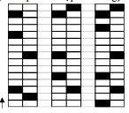 Hãy sử dụng lộ trình lấy hàng mid-point và largest gap để tiến hành lấy hàng theo sơ đồ sau (các ô đen là nơi có hàng, chiều mũi tên là hướng xuất phát và tập kết hàng):