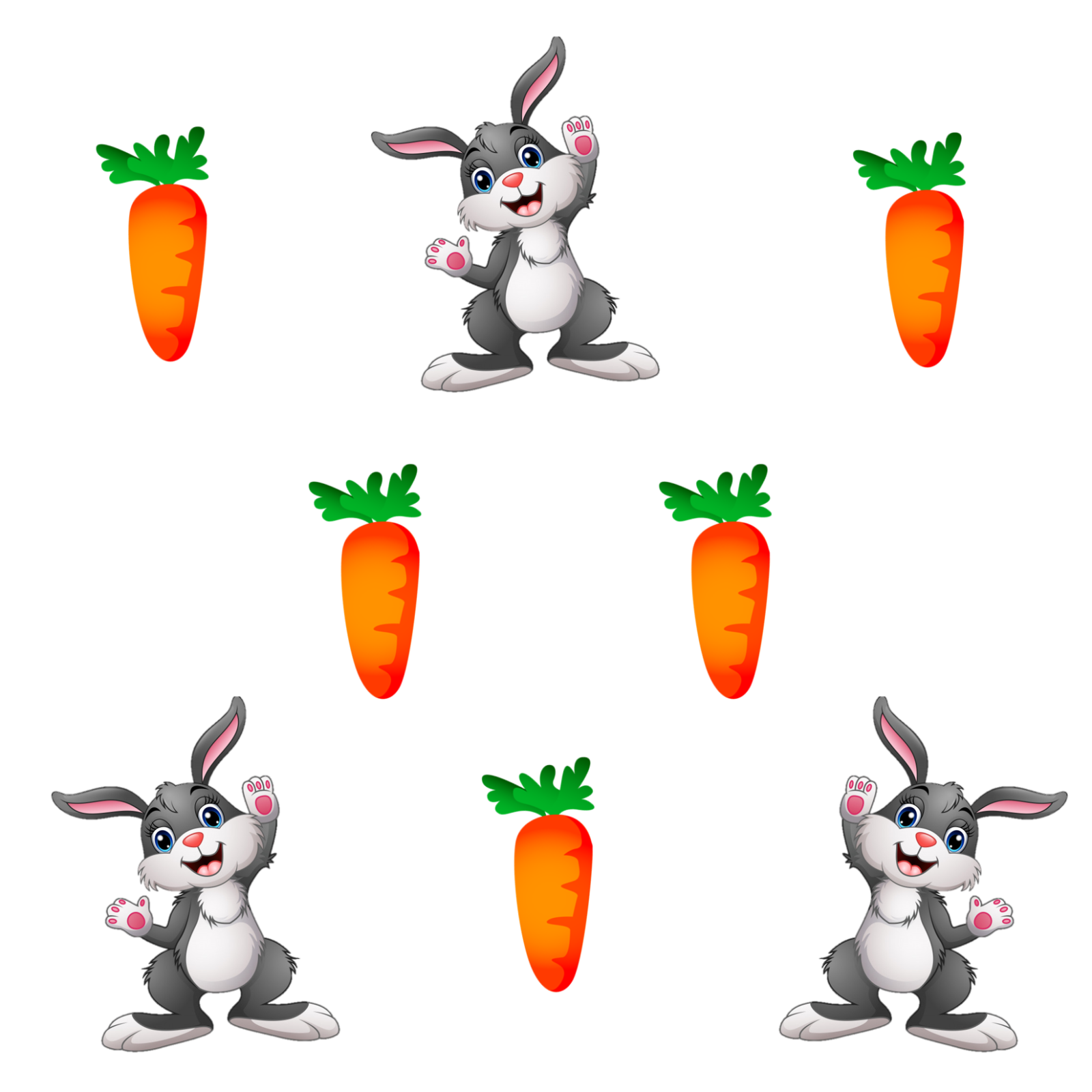 Trong hình ảnh này có 3 con thỏ và 5 củ cà rốt.