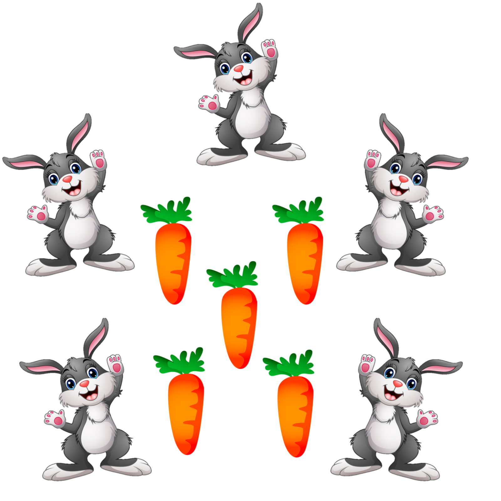 Trong hình ảnh này có 3 con thỏ và 5 củ cà rốt.