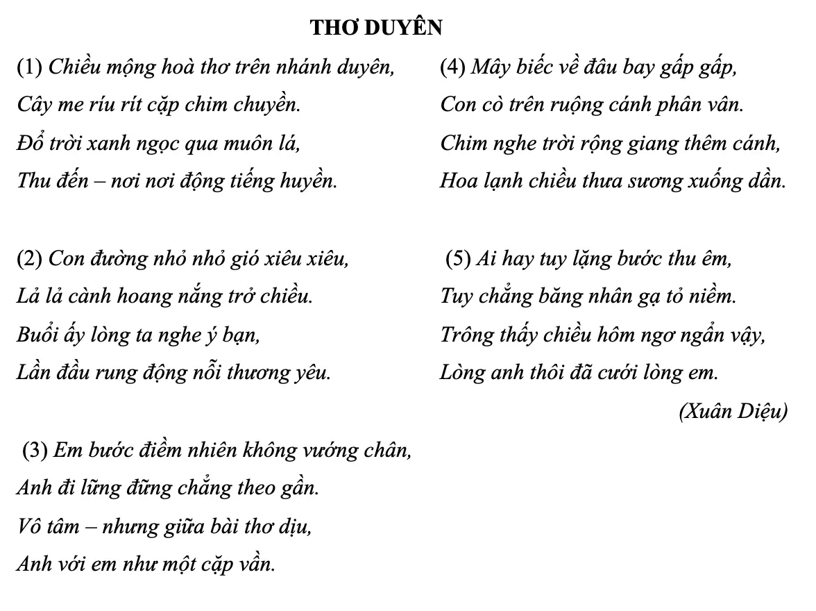 Chữ “duyên” trong nhan đề của bài thơ có thể hiểu là: sự hoà hợp giữa thiên nhiên với thiên nhiên, giữa thiên nhiên với con người và giữa anh và em.