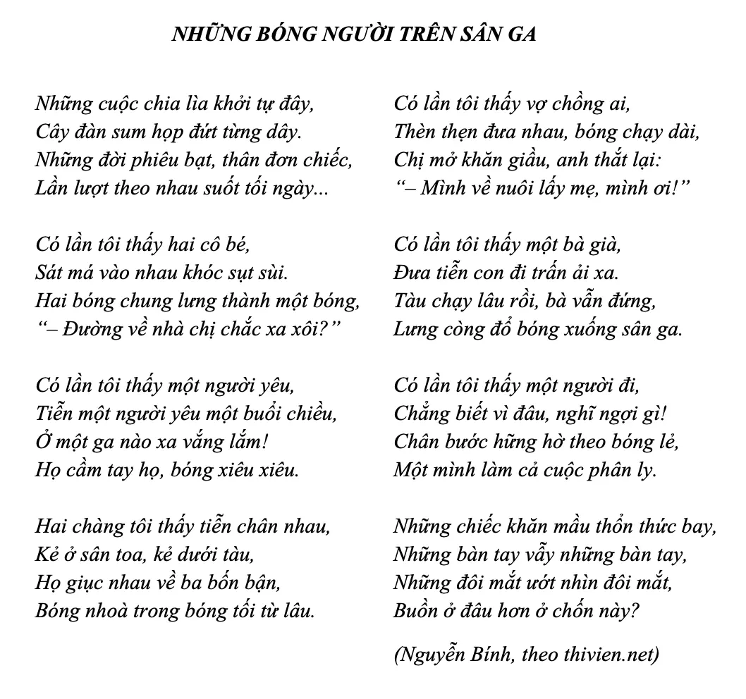Bài thơ viết về đề tài: những cuộc chia ly.