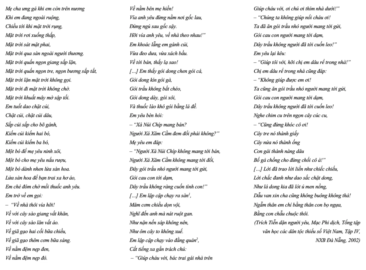 “Nghĩ đến anh mà nát ruột gan”, “Ngẫm thân em chỉ bằng thân con bọ ngựa”.