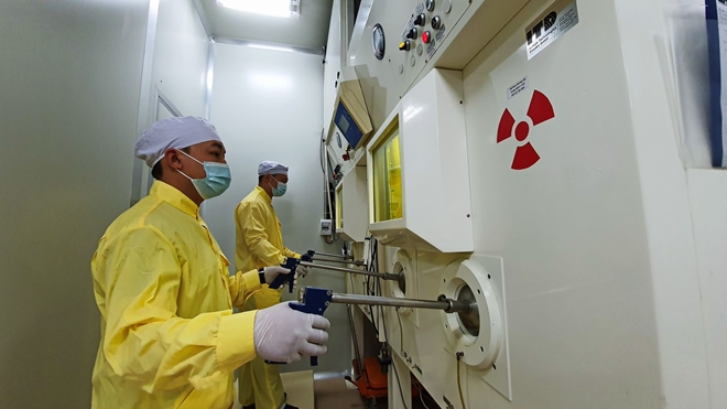 Khi làm việc với phóng xạ, áo chì được mặc để che chắn các cơ quan trọng yếu của cơ thể, giảm thiểu tác hại của tia phóng xạ.