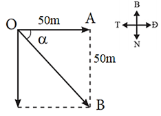 Trong trường hợp này, người bơi bơi ngang 50m và trôi xuôi 50m, tạo thành một tam giác vuông.