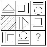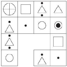 Câu hỏi yêu cầu điền hình còn thiếu vào chỗ trống trong một chuỗi hình ảnh có quy luật. Quan sát chuỗi hình ảnh cho trước, ta thấy có sự lặp lại của các hình tam giác, vuông, tròn theo một trình tự nhất định. Cụ thể, hình ở khung còn trống là hình vuông, là hình thứ hai trong chuỗi lặp lại "tam giác, vuông, tròn". Trong các phương án đưa ra, phương án 1 là hình vuông.