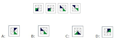 Câu hỏi kiểm tra khả năng nhận diện quy luật hình ảnh và suy luận logic để tìm ra hình còn thiếu trong một chuỗi hoặc một tập hợp các hình có mối liên hệ với nhau. Trong trường hợp này, hình ảnh chính cho thấy một hình vuông được chia thành bốn phần bởi hai đường chéo. Ba phần của hình vuông được tô màu, còn một phần để trống. Các phương án trả lời là các hình vuông nhỏ, mỗi hình thể hiện một cách tô màu khác nhau của một phần hình vuông. Để tìm ra hình phù hợp nhất, ta cần quan sát vị trí của các phần được tô màu trong hình gốc và tìm phương án có cách tô màu tương ứng với phần còn trống. Trong hình gốc, ba phần được tô màu là ba phần ở góc trên bên trái, góc dưới bên trái và góc dưới bên phải (khi xem xét hình vuông như một bàn cờ 2x2). Phần còn trống là phần ở góc trên bên phải. Trong các phương án, phương án B (ứng với answer_no: 1) là hình vuông có phần tô màu ở góc trên bên phải, đây chính là hình phù hợp nhất để lấp đầy khoảng trống và hoàn thiện quy luật đã cho.