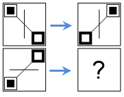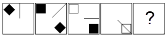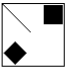 * Đáp án 0: Hình tròn. Loại bỏ vì không phù hợp với cấu trúc các hình còn lại (hình vuông với các đường thẳng). * Đáp án 1: Một đường chéo và một đường ngang. * Đáp án 2: Một đường chéo và một đường dọc. * Đáp án 3: Một đường ngang và một đường dọc (dấu cộng '+').