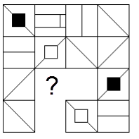 Câu hỏi yêu cầu chọn hình phù hợp nhất để đặt vào khung còn trống. Quan sát hình ảnh trong khung, ta thấy có một hình vuông lớn ở giữa, bên trong là hai hình tam giác cân ghép lại tạo thành một hình thoi. Các cạnh của hình thoi này hướng về bốn phía. Ta cần tìm một hình trong các phương án có thể lấp đầy khoảng trống một cách logic và hài hòa về hình học. Phương án 0 là một hình vuông nhỏ, không phù hợp. Phương án 1 là một hình tròn, cũng không phù hợp. Phương án 2 là một hình vuông lớn hơn, có các cạnh được kẻ sọc, và các góc của nó hướng về bốn phía, tương tự như các khoảng trống tạo ra bởi hình thoi lớn trong khung. Phương án 3 là một hình chữ nhật nằm ngang, không phù hợp. Do đó, hình vuông với các góc hướng ra bốn phía (phương án 2) là hình phù hợp nhất để lấp đầy khoảng trống còn lại, tạo thành một bố cục đối xứng và hoàn chỉnh.