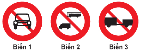 Biển 1 là biển cấm tất cả các loại xe cơ giới đi vào, trừ xe gắn máy, mô tô hai bánh và xe ưu tiên. ⇒ Đáp án đúng: Biển 1.