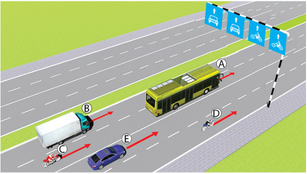 Các loại phương tiện phải đi đúng làn đường và tuân thủ tốc độ tối đa cho phép trên làn đường đó.