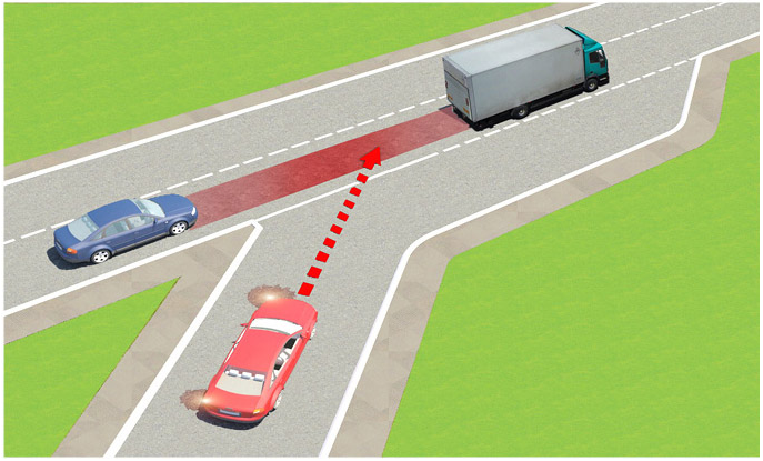 Phía trước có một xe màu xanh đang vượt xe màu vàng trên làn đường của bạn, bạn xử lý như thế nào trong trường hợp này?