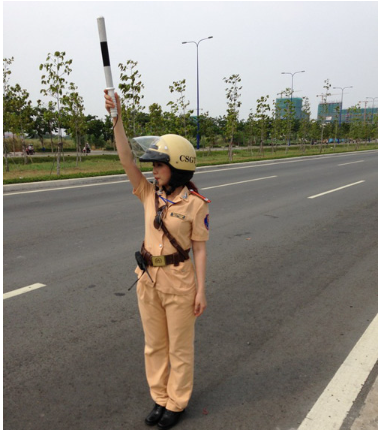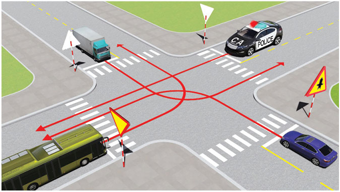 Bấm còi, nháy đèn báo hiệu, giữ nguyên tốc độ và đi tiếp